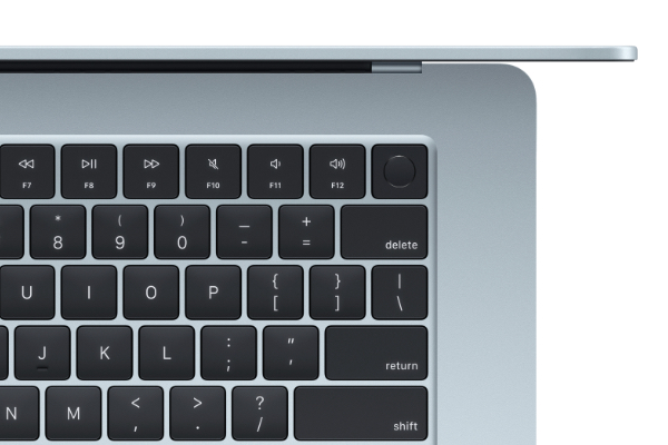 Im März 2025 stellte Apple das neue MacBook Air mit dem ultraschnellen M4 Chip vor, das bis zu 18 Stunden Batterielaufzeit, eine neue 12‑MP‑Center‑Stage‑Kamera, Unterstützung für bis zu zwei externe 6K‑Displays und mindestens 16 GB gemeinsamen Arbeitsspeicher bietet. Es ist dünn, leicht, lüfterlos und in den Farben Himmelblau sowie in Mitternacht, Polarstern und Silber erhältlich. Das MacBook Air kommt in 13" und 15" Größen, läuft im März 2025 mit macOS Sequoia und integriert Apple Intelligence für schnellere kreative und alltägliche Aufgaben. Mit Touch ID, Magic Keyboard, Liquid‑Retina‑Display, Mikrofon‑ und Lautsprechersystemen sowie hoher Energieeffizienz und recycelten Materialien.